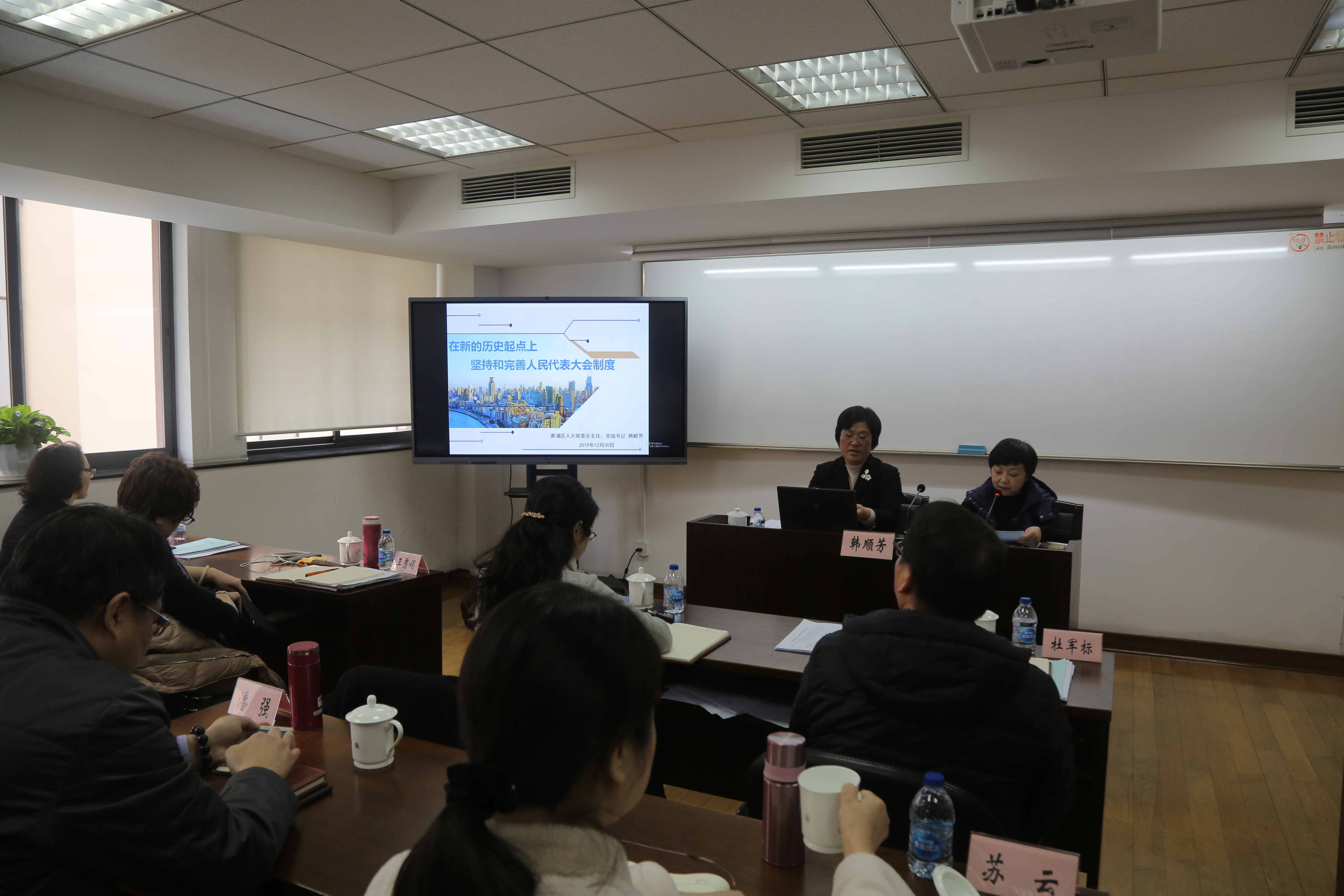 本网讯 2019年12月30日下午,黄浦区人大常委会主任韩顺芳到区委党校(行政学院),为2019年第二期处级干部进修班学员作题为“在新的历史起点上 坚持和完善人民代表大会制度”的专题报告。