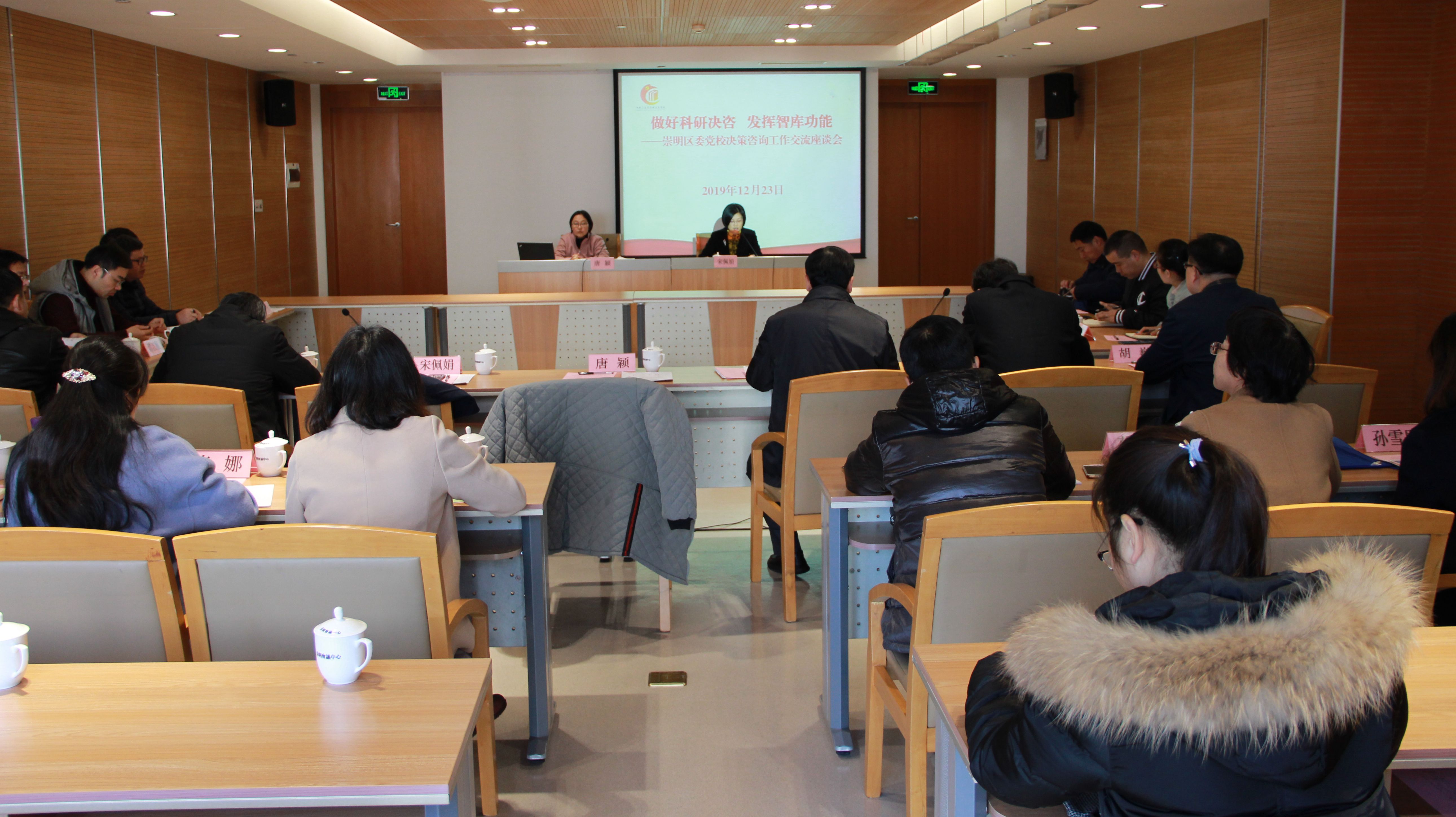 本网讯 为贯彻落实《中国共产党党校(行政学院)工作条例》精神,有效提升崇明区委党校科研决咨能力,更好发挥新时代党校智库功能,更高质量地为崇明区委区政府中心工作提供决策咨询服务,12月23日上午,崇明区委党校在区会议中心415室举办科研决咨交流座谈会。市委党校决策咨询部主任唐颖,区人大常委会研究室主任沈学能,区政协副秘书长、研究室主任姚安宝,区委研究室副主任陈伟出席会议,区委党校常务副校长宋佩娟主持会议。