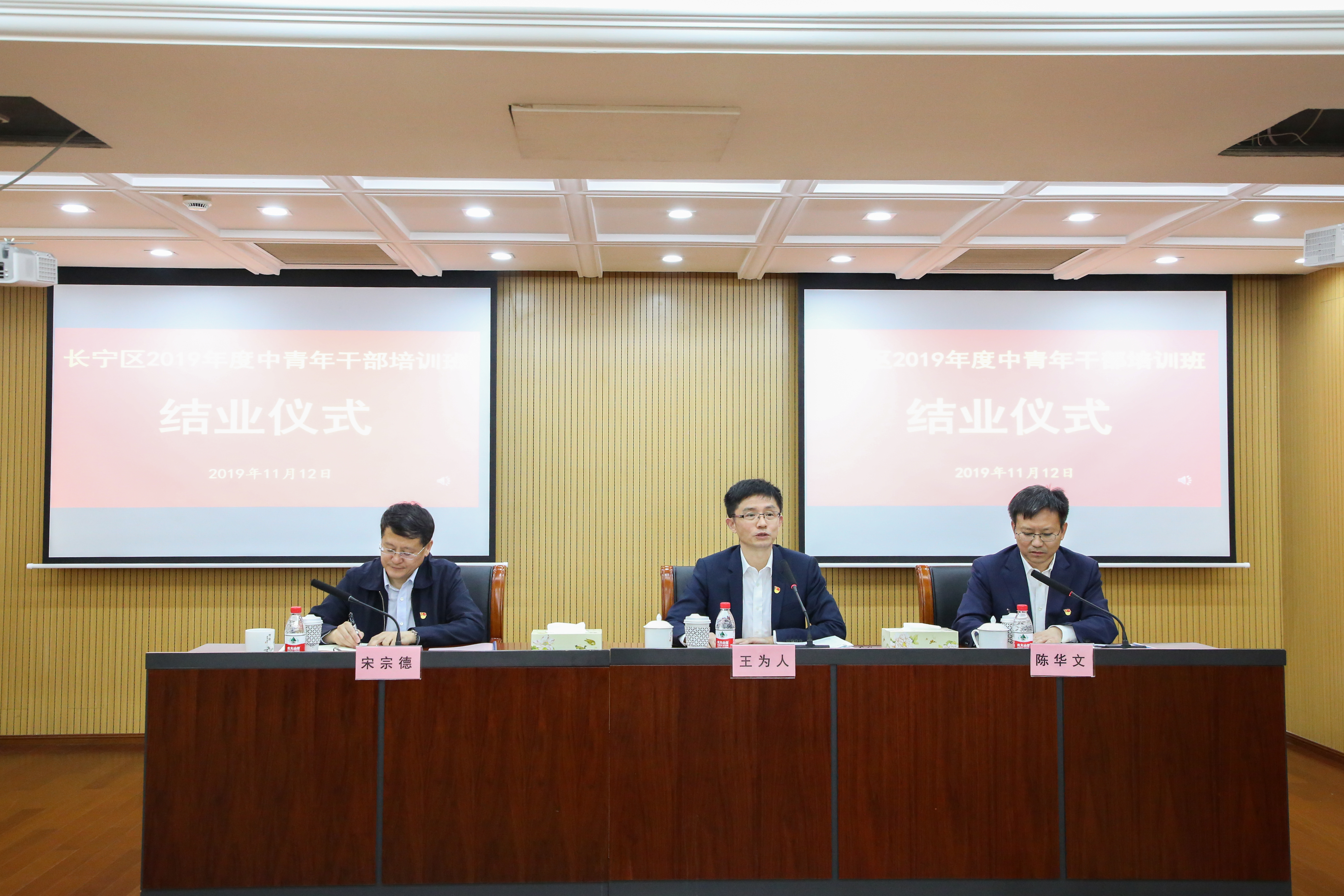本网讯 11月12日下午,长宁区2019年度中青年干部培训班在区委党校举行结业式。区委书记王为人,区委副书记、区委党校校长陈华文,区委常委、组织部部长宋宗德出席结业式。