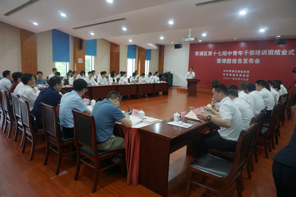 本网讯 6月17日下午,为期两个月的青浦区第十七期中青年干部培训班圆满完成了各项学习培训任务,在区委党校顺利结业。青浦区委常委、组织部部长蒋仁辉出席结业式并作讲话,区委组织部副部长陆志斌主持。市委党校马克思主义学院副院长陈方刘教授,区委党校常务副校长陈菊英等出席。