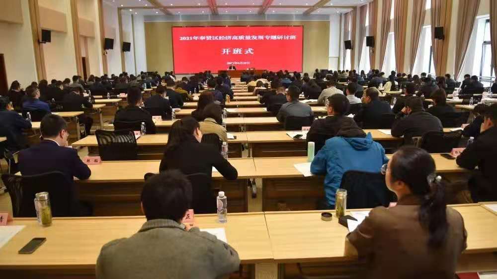 本网讯 为深入贯彻落实习近平新时代中国特色社会主义经济思想,在“十四五”规划开局之年全力做好经济战线各项工作,推动区域经济高质量发展,4月15日,奉贤区经济高质量发展专题研讨班在奉贤党校开班。奉贤区委副书记、代区长袁泉出席开班式并做动员讲话。