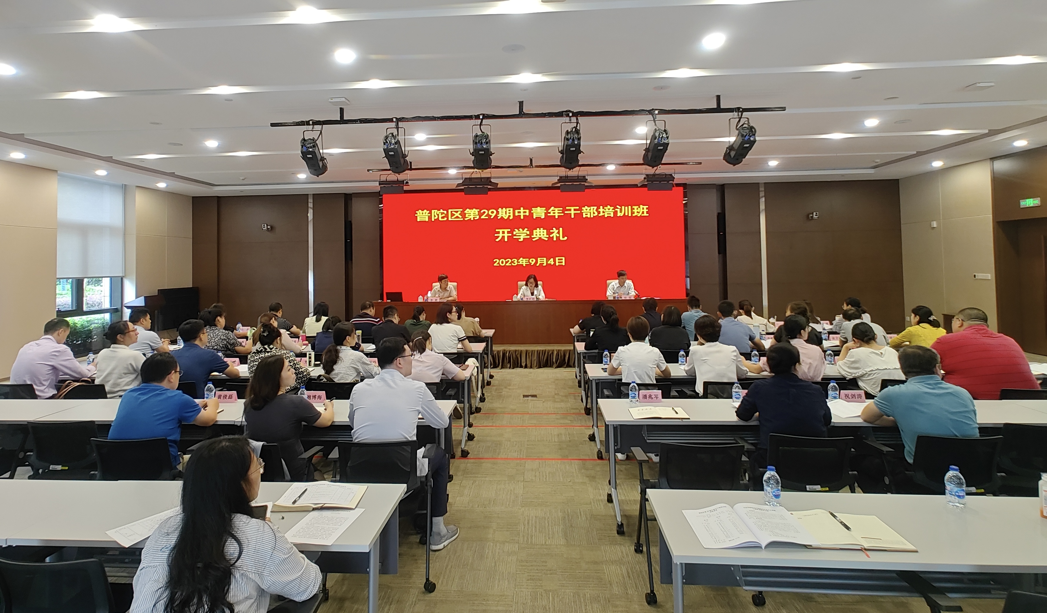 普陀区委组织部副部长应征主持会议。普陀区委党校常务副校长李莉就教学计划、课程设置等作培训说明。普陀区第29期中青班全体学员和区委党校教师参加。