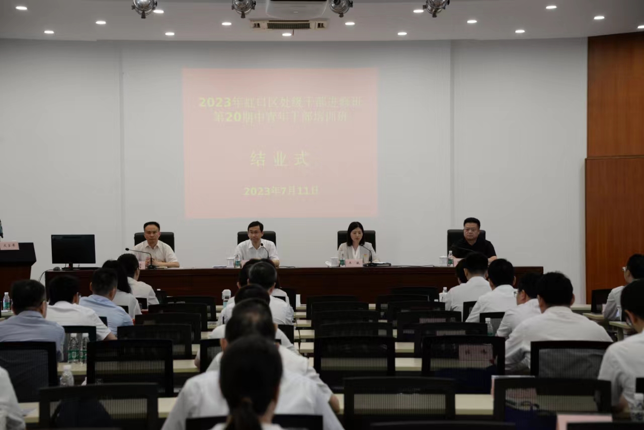 本网讯 7月11日上午,2023年虹口区处级干部进修班和第二十期中青年干部培训班结业仪式在区委党校举行。虹口区委常委、组织部部长蒋仁辉,区委组织部副部长、区人大常委会人事工委主任王敏,区委党校常务副校长温美平,第二十期中青年干部培训班带班组织员、区司法局三级调研员周球出席结业式。