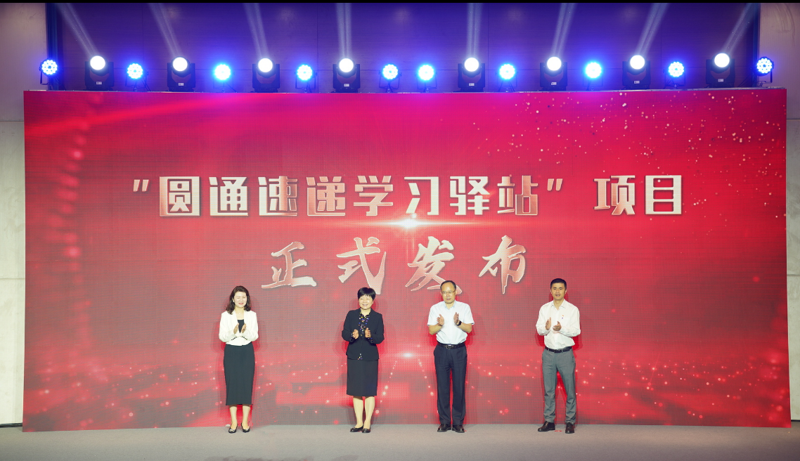 会上,陈菊英、陈涛、周慧娜和叶锋共同发布“圆通速递学习驿站”项目。该项目以“学习驿站”作为基层理论宣讲的延伸载体,让快递小哥们在工作之余能够有一个短暂休憩、集聚交流、思想升华的理论学习阵地。