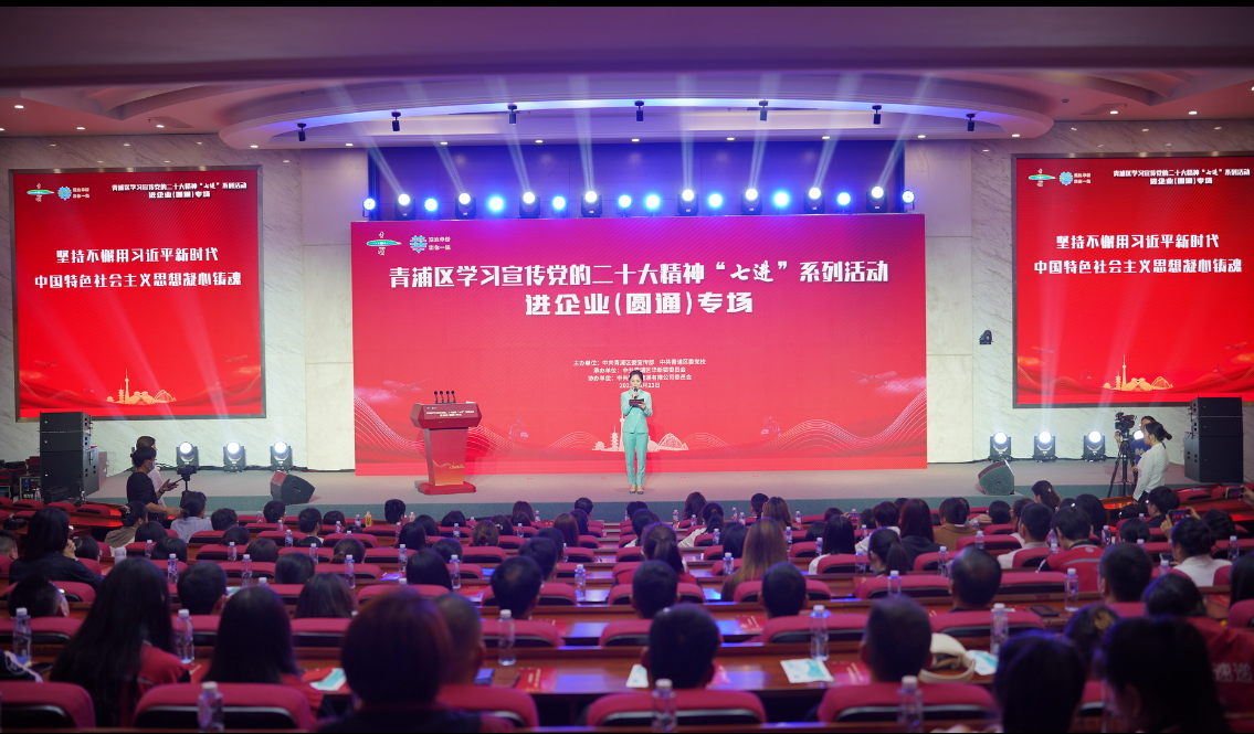 本网讯 近日,青浦区学习宣传党的二十大精神“七进”系列活动——进企业专场活动在华新镇圆通速递有限公司圆满举办,以“理论+文艺”的形式让党的二十大精神学习“活起来”“热起来”,为扎实推动党的二十大精神落地见效、走深走实注入了源源不断的思想新动能。青浦区委党校常务副校长陈菊英,区委宣传部副部长陈涛,华新镇党委副书记周慧娜,华新镇党委委员赵荔,圆通速递党委副书记、副总裁叶锋等出席活动。