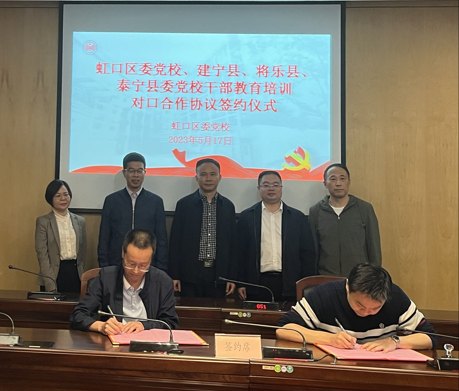 座谈会上,虹口区委党校与三县党校分别签订干部教育培训对口合作协议。