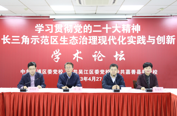 本网讯 为深入学习贯彻党的二十大精神,扎实推进市哲社规划委托课题研究工作,4月27日下午,青浦区委党校、吴江区委党校、嘉善县委党校联合举办“长三角示范区生态治理现代化实践与创新”学术论坛,特邀上海市委宣传部原副部长李琪教授、上海市哲学社会科学办主任李安方教授、《文汇报》理论部主任杨逸淇教授莅临指导。青浦区委党校常务副校长陈菊英主持会议,三地党校相关领导和部分教师参加了会议。