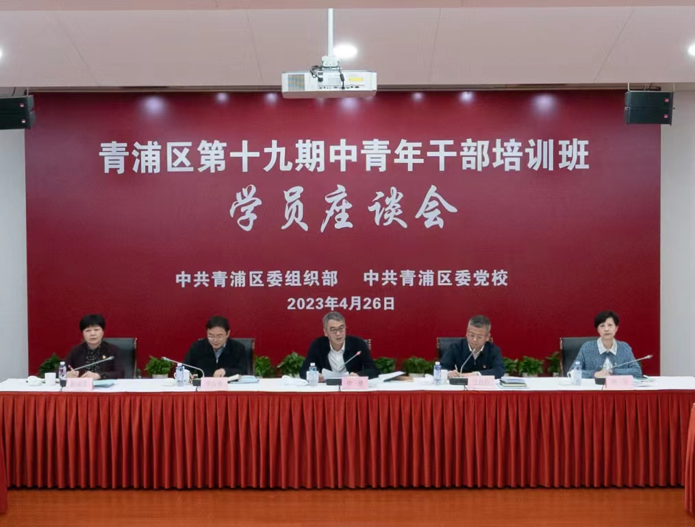 本网讯 4月26日下午,青浦区第十九期中青年干部培训班学员座谈会在区委党校召开,青浦区委书记徐建出席并讲话。区委副书记、区委党校校长张权权主持会议,区委常委、区委组织部部长李方明、区委办主任李欢、区委党校常务副校长陈菊英出席会议。