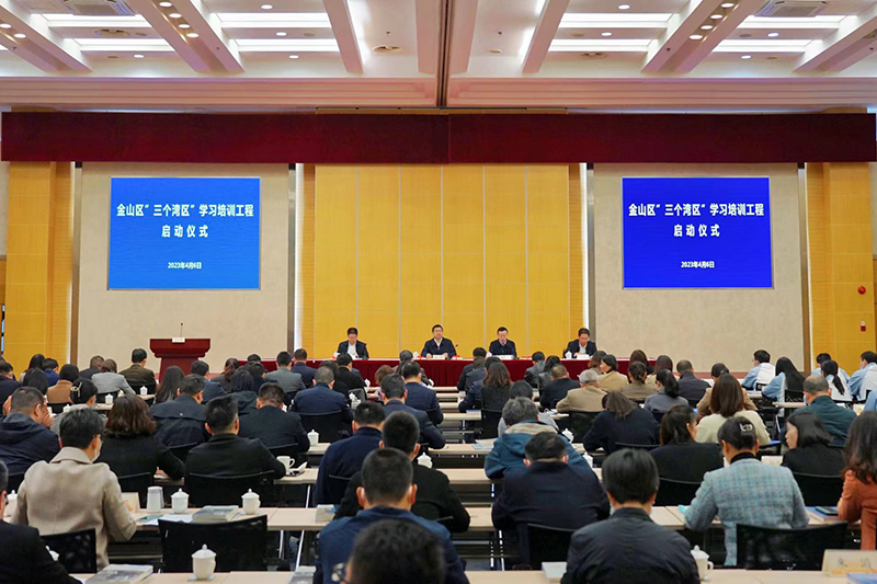 本网讯 4月6日上午,金山区“三个湾区”学习培训工程启动仪式在区公共服务中心举行。金山区委副书记、区委党校校长袁罡出席并讲话。区委常委、组织部部长李铭主持。区委组织部副部长孙群荣、区委党校常务副校长刘光明出席。来自金山区各单位、各部门140名学员参加。