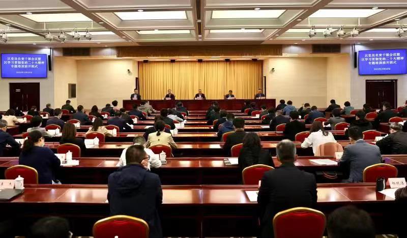 曹立强传达全市党员负责干部会议精神,并指出,学习贯彻党的二十大精神是当前一段时间的首要政治任务,第一时间举办党政负责干部专题班,就是要在第一时间学习好、宣传好、贯彻好党的二十大精神,深刻领悟“两个确立”的决定性意义,紧密团结在以习近平同志为核心的党中央周围,把思想和行动统一到党的二十大精神上来,奋力开创“建设新徐汇、再造新徐汇”的新局面。