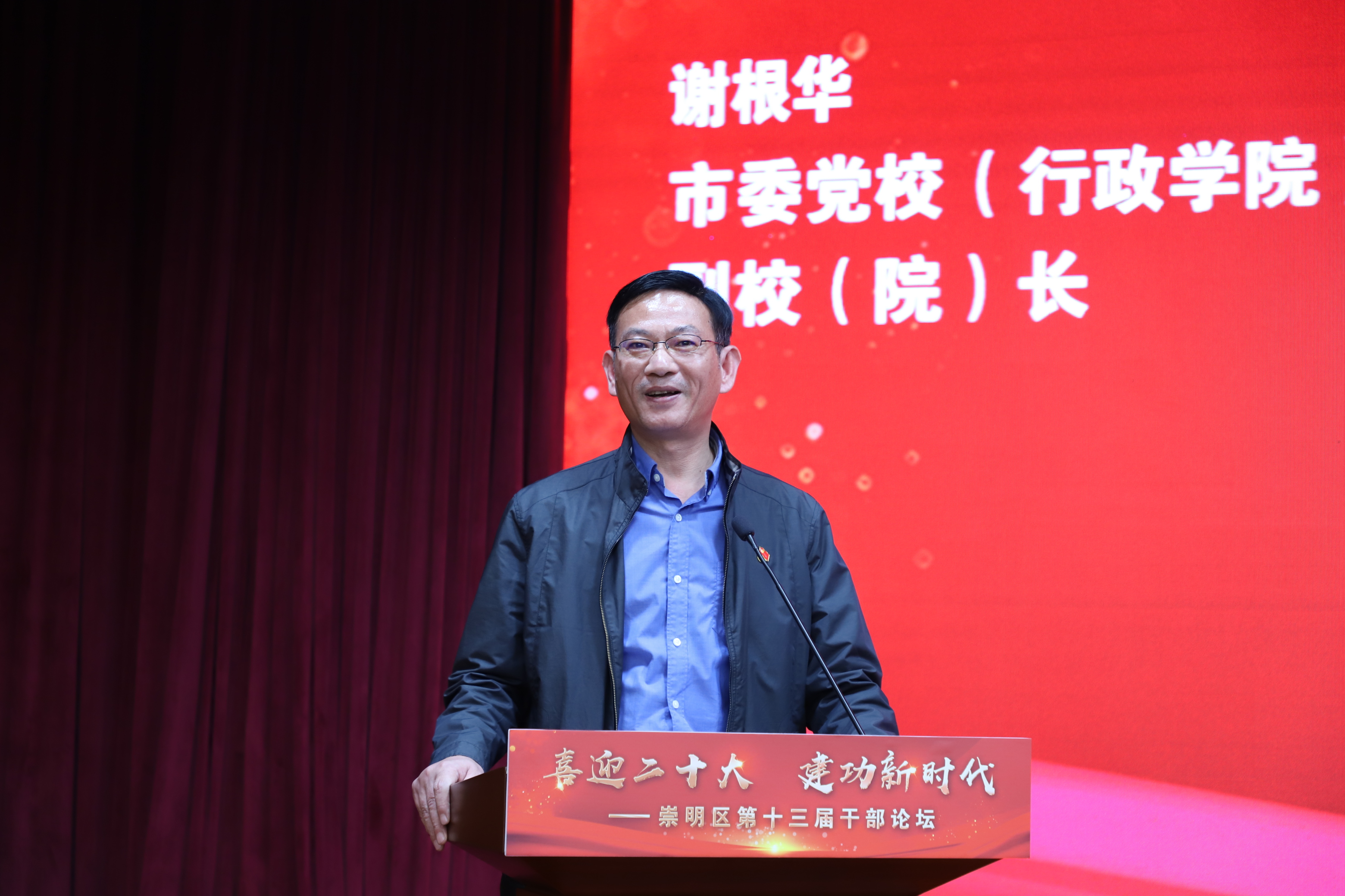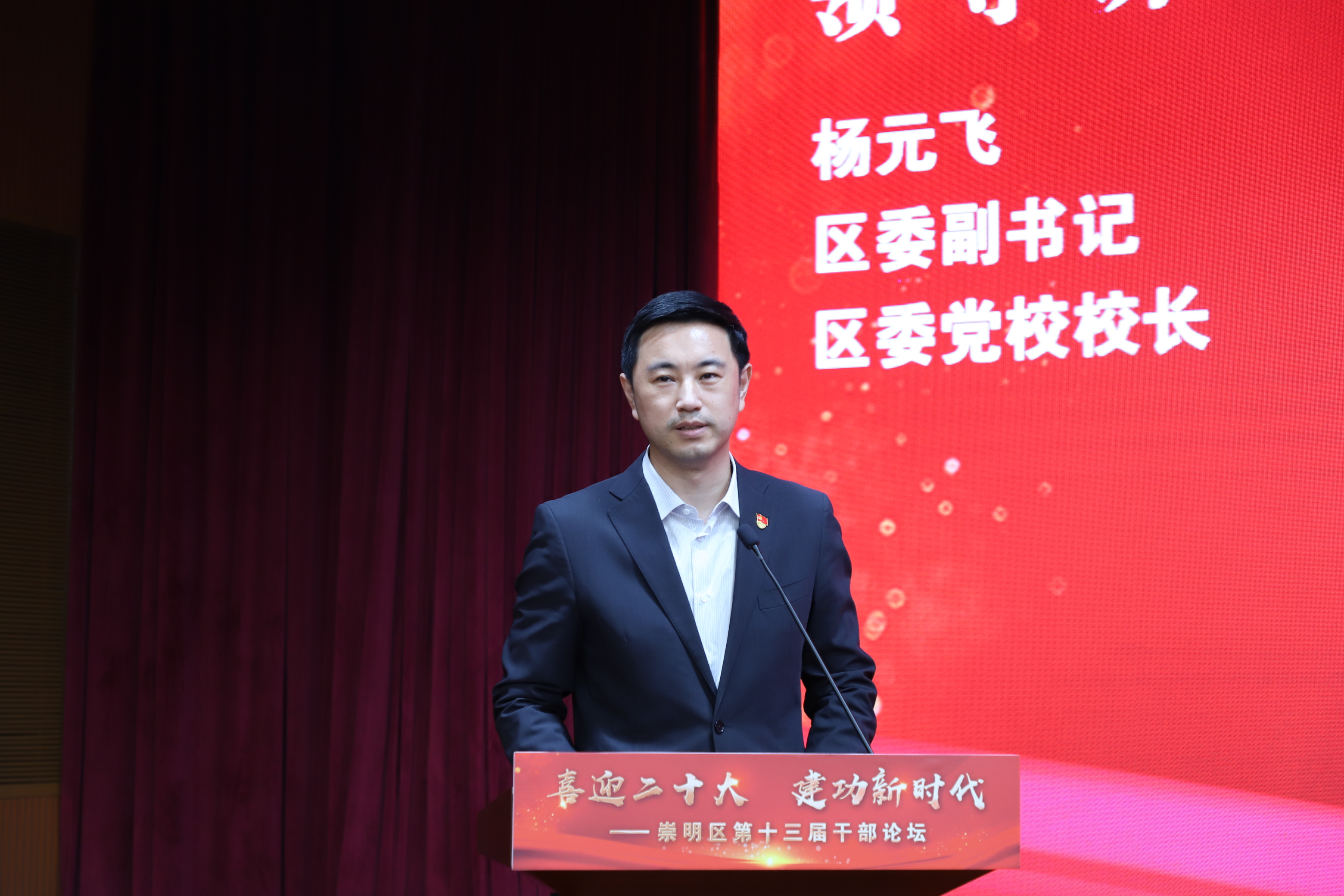 本网讯 10月9日,崇明区委组织部、区委党校围绕“喜迎二十大 建功新时代”主题,联合举办崇明区第十三届干部论坛。市委党校(行政学院)副校(院)长谢根华,崇明区委副书记、区委党校校长杨元飞,区委常委、组织部部长陆志斌出席论坛。市委组织部、市委党校有关处室领导,各乡镇、各部委办局分管负责同志,来崇挂职干部代表,2022年崇明区处级领导干部轮训班、中青年干部培训班全体学员参加。本次论坛采取“线下主会场+视频分会场”的方式进行。