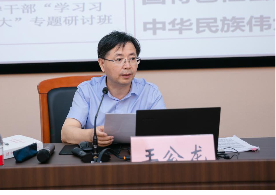 王公龙教授作《科学回答中国之问、世界之问、人民之问、时代之问的权威著作——〈习近平谈治国理政〉第四卷学习体会》专题辅导报告。结合学习贯彻习近平总书记在省部级主要领导干部专题研讨班重要讲话精神,王公龙教授系统介绍了《习近平谈治国理政》第四卷的总体框架和主要特色,深刻解读了书中蕴含的重大论断及其内在逻辑关系,为学员们深入学习领会《习近平谈治国理政》第四卷提供了方法指导。报告主题鲜明、重点突出、脉络清晰,对学员更好地学懂弄通做实《习近平谈治国理政》第四卷具有很强的指导性和启发意义。