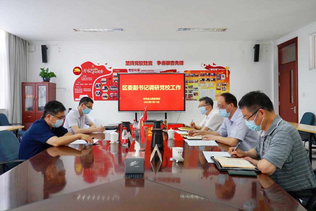 金山区委党校常务副校长孙秀强汇报了区委党校2022年上半年工作开展情况以及下半年工作打算。 金山区委党校领导班子成员、区委办副主任朱新阳等参加调研。