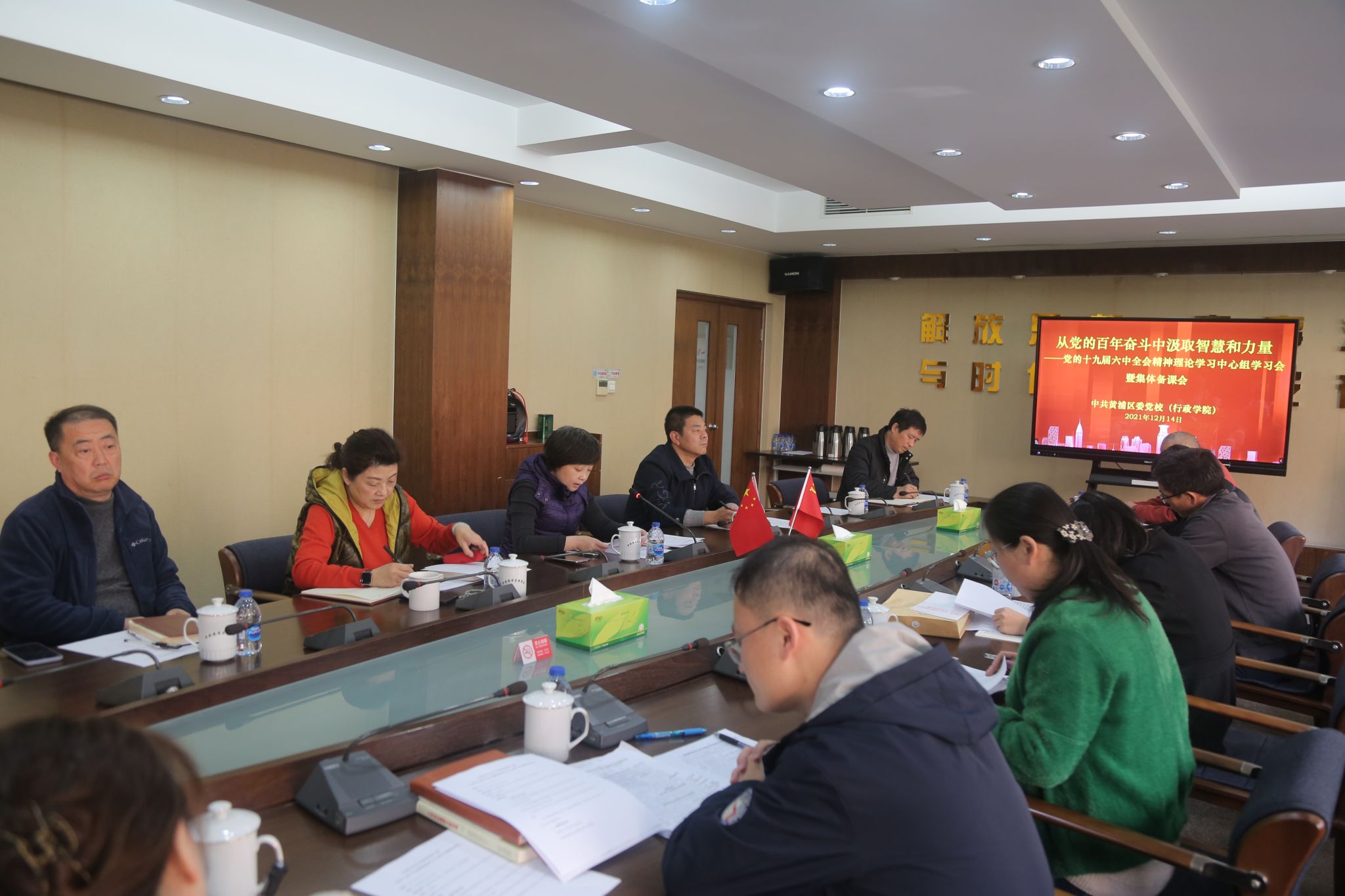 本网讯 12月14日下午,黄浦区委党校(行政学院)以“从党的百年奋斗中汲取智慧和力量”为主题,召开党的十九届六中全会精神理论学习中心组学习、集体备课暨第三阶段党史学习教育部署会,班子成员和教师代表开展深入学习交流。校(院)中层以上干部和全体教师参加学习。