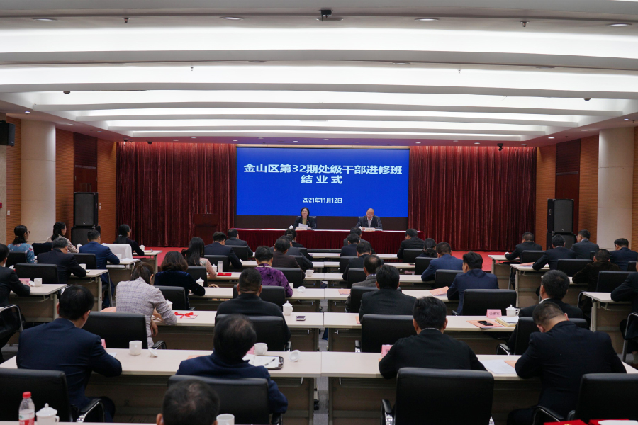 本网讯 11月12日下午,金山区第32期处级干部进修班结业式在区会议中心顺利举行。金山区人大常委会党组成员,区委组织部副部长蒋雅红出席并讲话。金山区委党校常务副校长孙秀强主持会议。