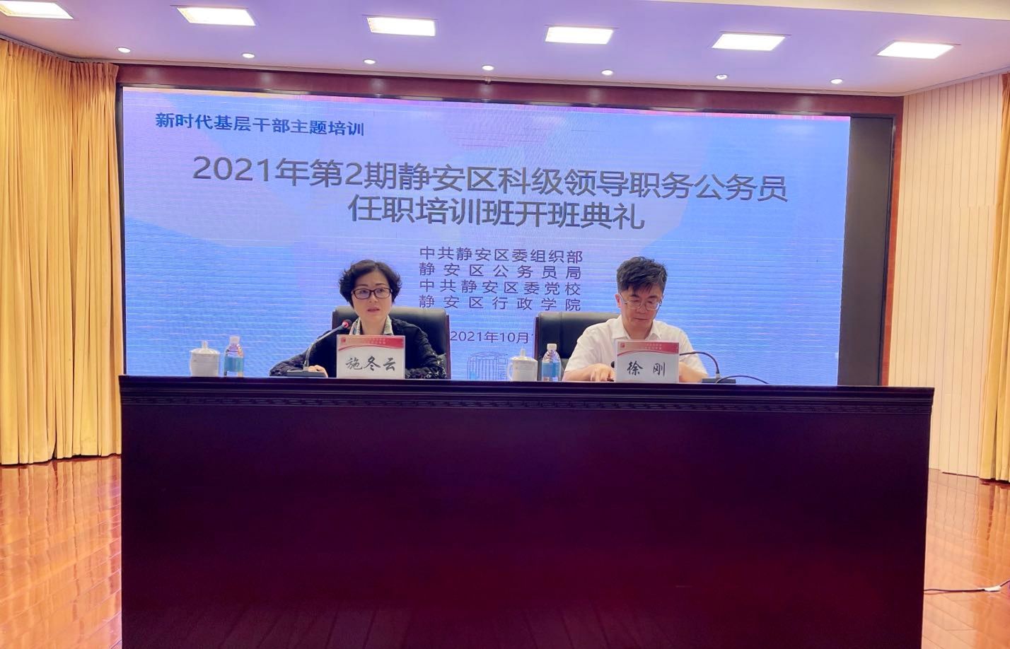 本网讯 10月11日上午,2021年(第2期)静安区科级领导职务公务员任职培训班在区委党校开班。静安区委组织部副部长、区委编办主任、区公务员局局长施冬云出席开班式,区委党校常务副校长徐刚主持。