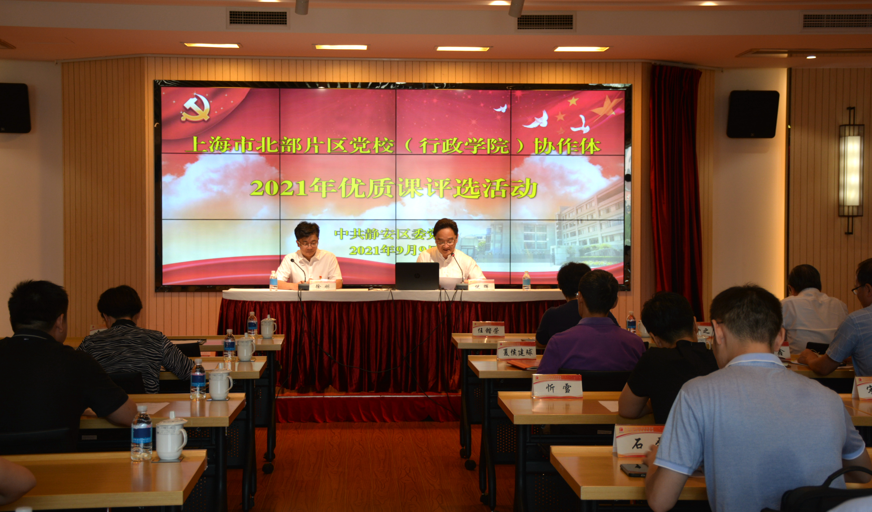 本网讯 9月9日上午,上海市北部片区党校(行政学院)协作体2021年优质课评选活动在静安区委党校举行。市委党校校院工作处处长任锴荣、市委党校袁秉达、黄力之教授与北部片区党校(行政学院)六家成员单位——普陀、虹口、杨浦、宝山、嘉定、静安区委党校(行政学院)常务副校(院)长、副校(院)长、教研室主任和授课教师参加了会议。静安区委党校(行政学院)常务副校(院)长徐刚致辞,副校(院)长倪辉主持会议。