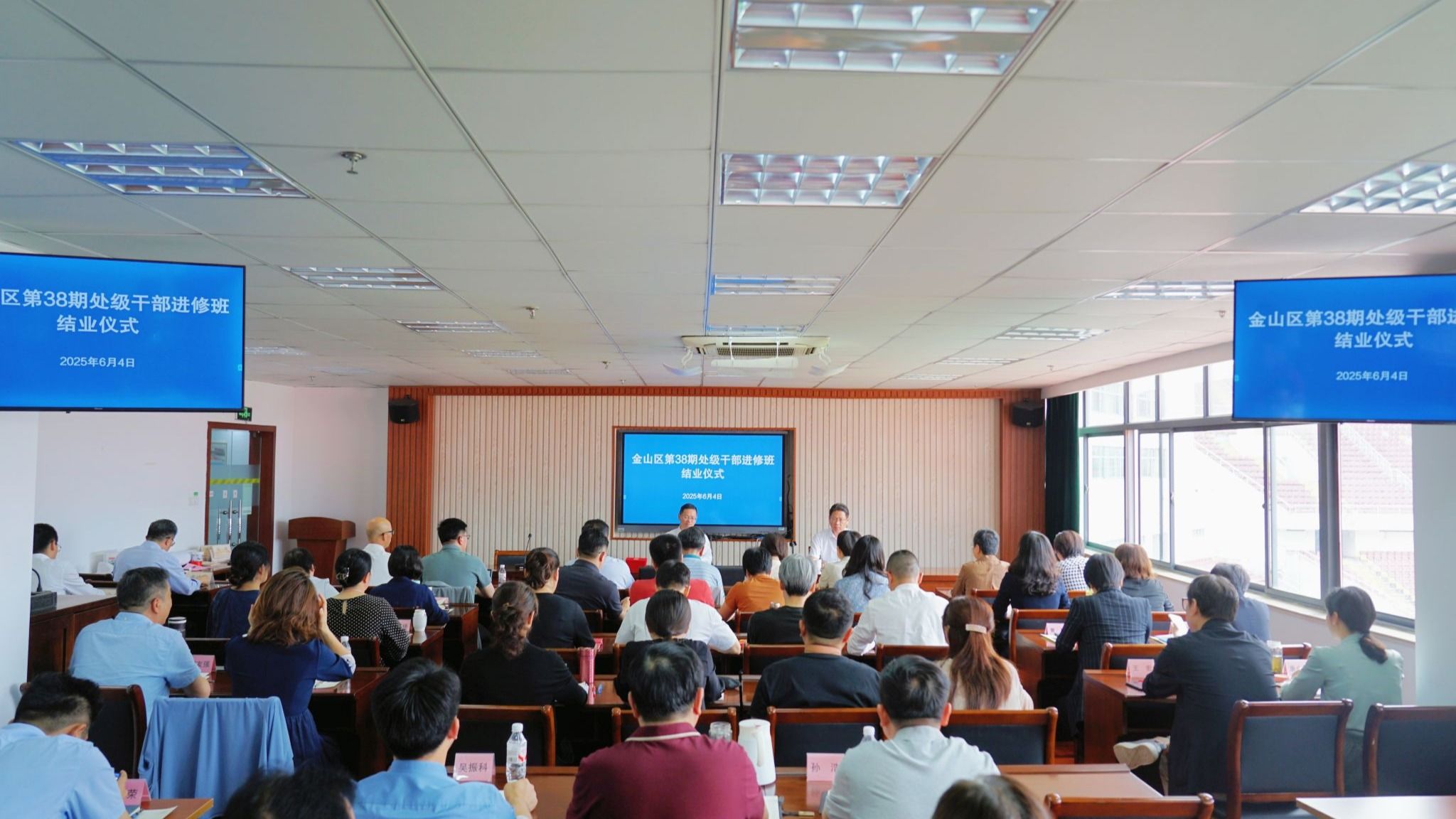 6月4日下午,金山区第38期处级干部进修班结业式在区委党校顺利举行。金山区委组织部副部长曹险峰出席并讲话,区委党校常务副校长刘光明主持会议。