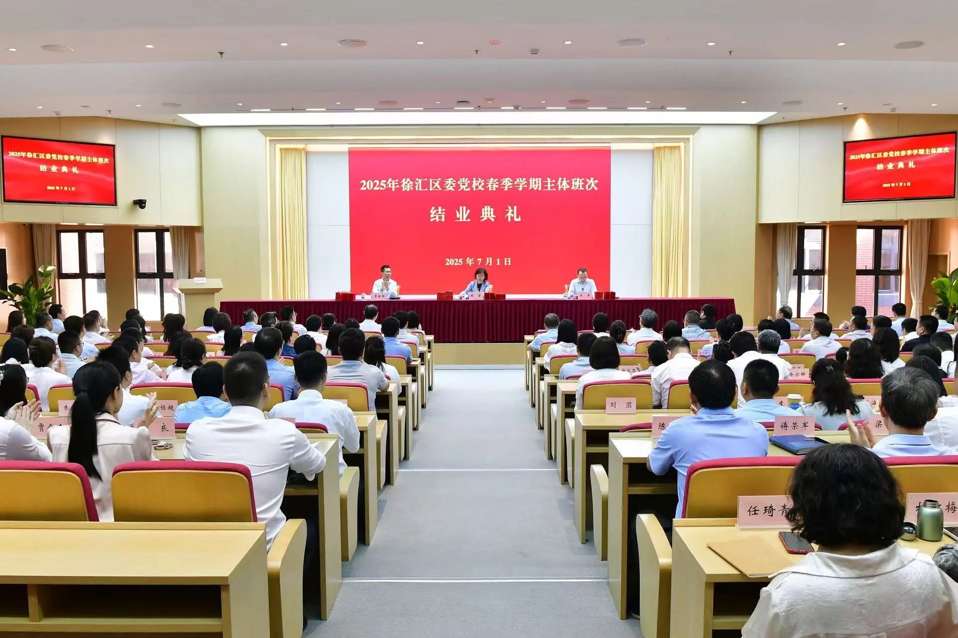 区委党校政治辅导员,2025年徐汇区处级领导干部进修班、徐汇区第10期青年干部培训班、2025年徐汇区处级领导干部任职培训班和2025年徐汇区深入贯彻中央八项规定精神专题培训班全体学员,共同参加结业典礼。