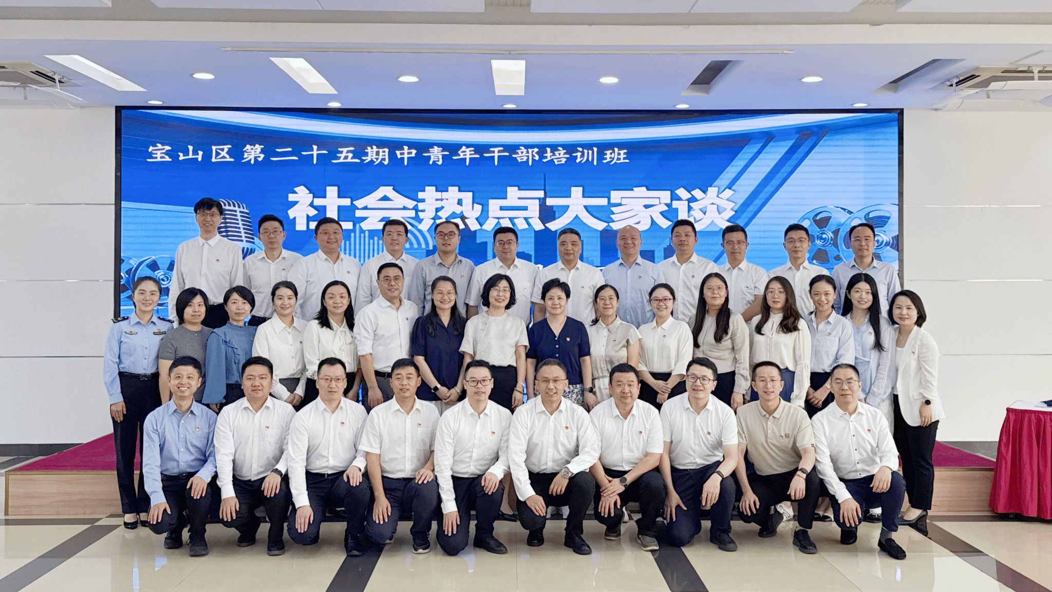 10月10日上午,宝山区第25期中青年干部培训班举办“社会热点大家谈”活动。区委常委、组织部部长、区委党校校长高路,区委组织部副部长、区人大常委会人事工委主任张海宾,区委党校常务副校长张淑红等出席活动。