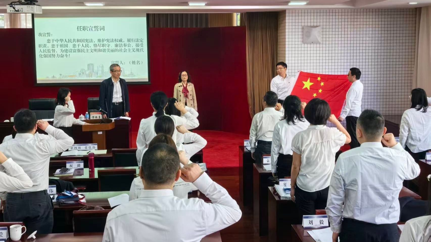 开班式上,41名学员进行了庄严的任职宣誓,全体学员面向国旗肃立,以铿锵之声作出庄严承诺。施冬云副部长监誓。