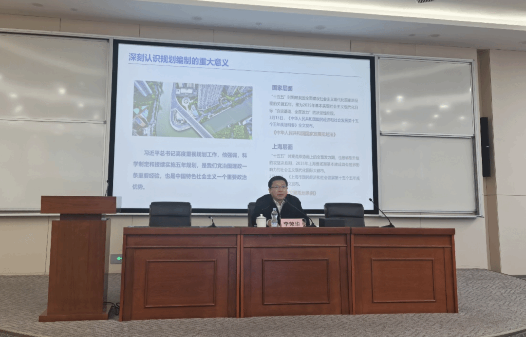 讲座立足新发展阶段、贯彻新发展理念、服务构建新发展格局,围绕未来五年发展蓝图,从指导思想、发展目标、重大任务、关键举措等方面,对普陀区“十五五”规划进行全面解读,精准剖析区域高质量发展面临的机遇优势和挑战短板。讲座紧扣中央精神,立足全市大局和普陀实际,既有宏观战略的高度,又有实践操作的精度,清晰勾勒出普陀经济社会发展的“路线图”与“任务书”。