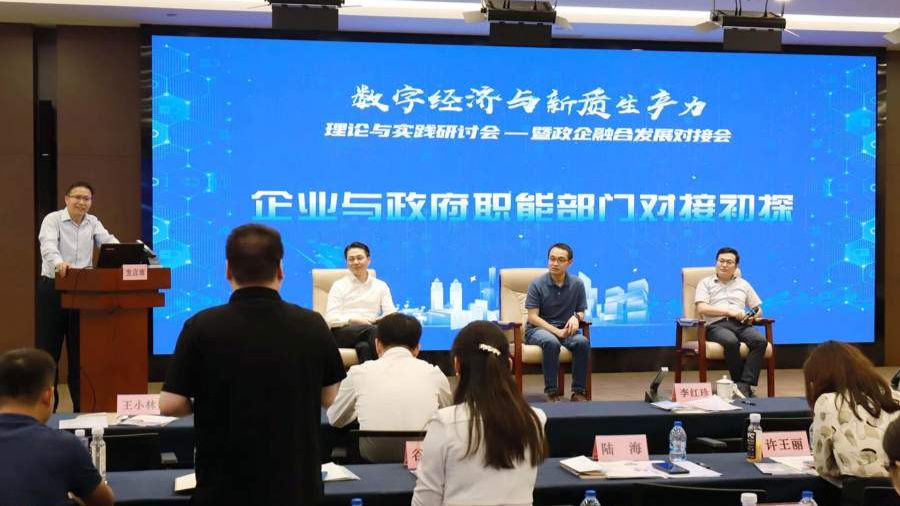 研讨会分为上、下两个半场。上半场围绕“数字经济与新质生产力”进行理论研讨,下半场围绕“政企融合发展”进行实践探究。普陀区科委、区数据局等单位还就企业提出的问题与困惑做了现场解答。