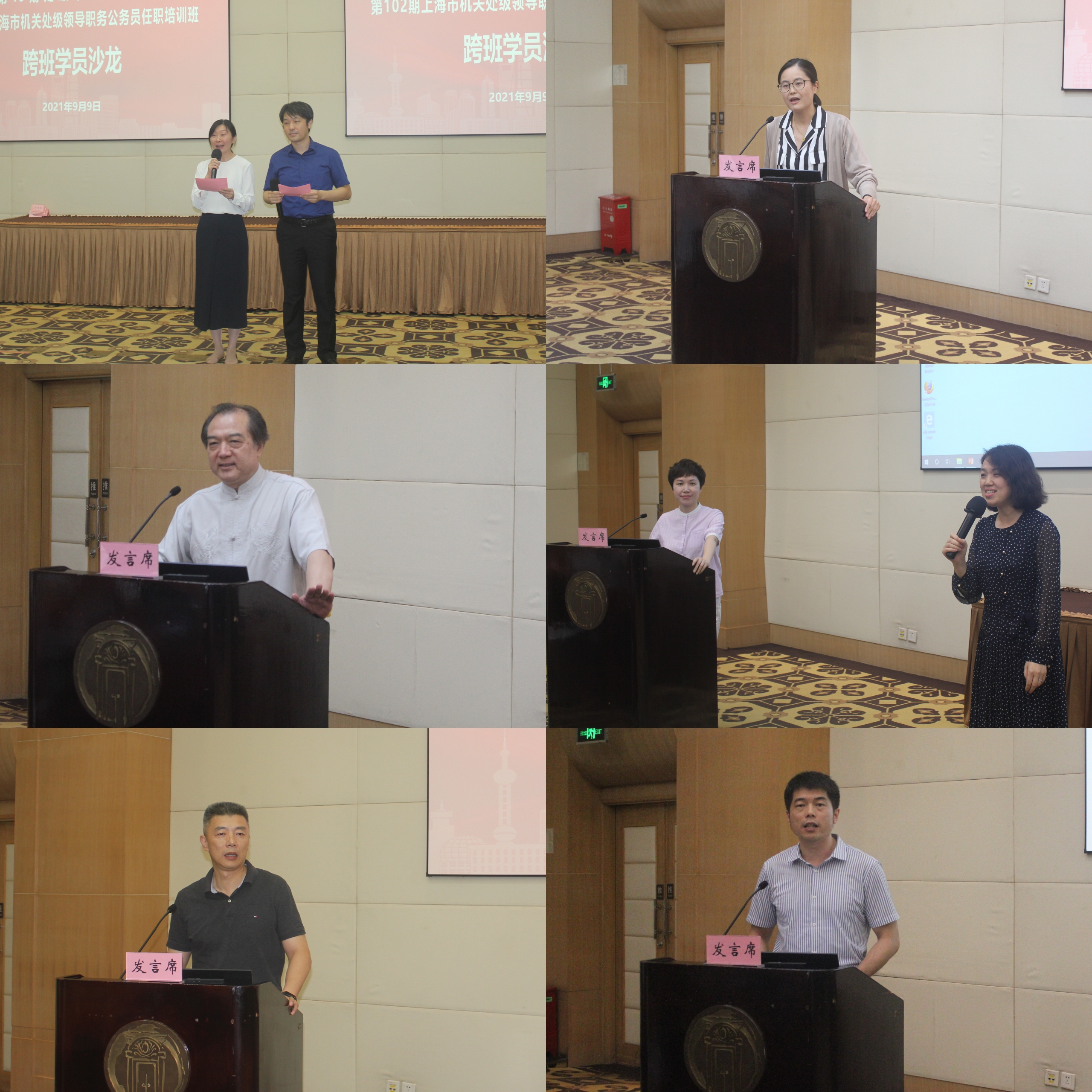 本网讯 为深入学习贯彻落实习近平总书记在2021年秋季学期中央党校(国家行政学院)中青年干部培训班开班仪式上的重要精神,提升学员综合素养,加强交流,增进友谊,9月9日晚,第15期处级干部进修班和第102期上海市机关处级领导职务公务员任职培训班共106名学员举行跨班学员沙龙。第15期处级干部进修班班主任邓洁、教学组长王耀东,第102期公务员班班主任石君磊、教学组长崔杨杨参加沙龙活动。