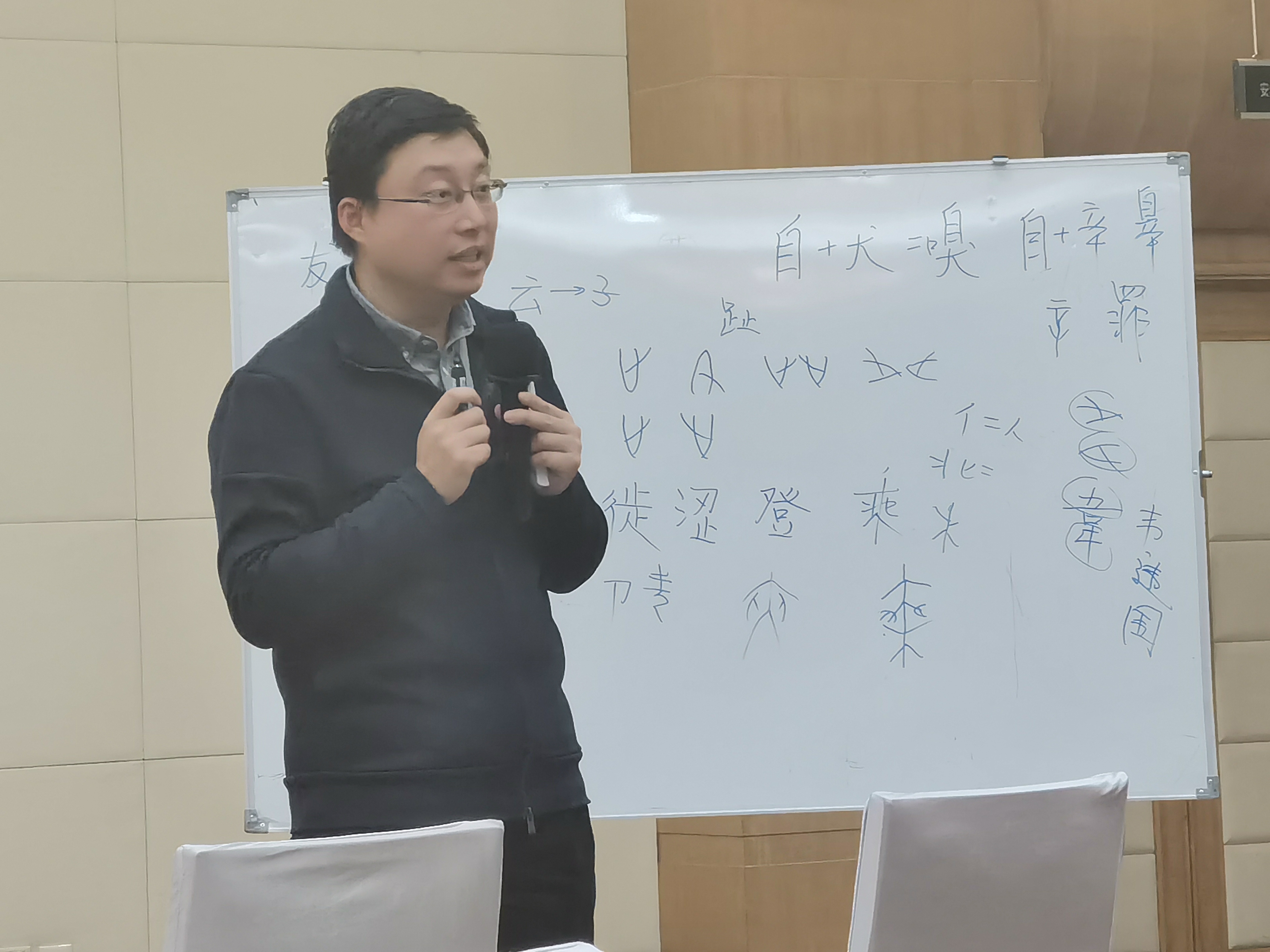 陈烨从汉字“自”和“止”入手,简要介绍了古今汉字字意方面存在的差异及“六书”“六体”等古文字学基本知识,并以汉字“手”为例,详细分析了汉字发展的主要脉络、汉字结构的主要特点及影响汉字书写变化的关键因素。分享期间,主讲人和学员还进行了热烈的互动交流。