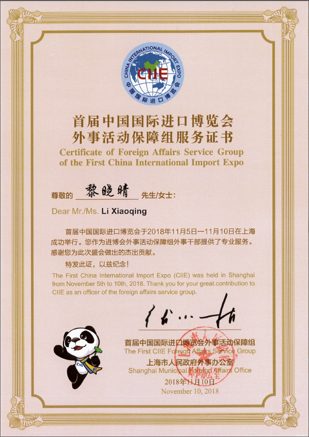 关键在合作。小小的接待组,工作内容却涵盖礼宾接待、对外联系、警卫、新闻联络、用车、住宿安排等多项职能。虽然是临时组建的团队,但大家协作默契、相互补台,充满战斗力。如在办理代表团行李出境时,因为涉及一些特殊物品,团组前辈们均事先进行耐心指导,在过程中跟进并给予充分支持,使我圆满地完成了各项任务。能够与这些精英队友并肩作战,是我此次进博会工作的最大收获之一,这不仅是一次难能可贵的学习机会,更促使我在今后工作中更加注重细节,加强团队合作,以大局观念做好各项工作。